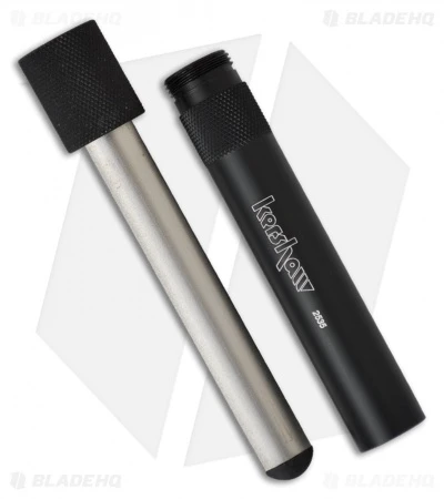 Kershaw’s Ultra-Tek Blade Sharpener is impregnated with 600 grit diamond coating bonded with nickel plating to a light weight tube. The handle is lightweight aluminum with knurled sections for optimal grip. The handle tube and sharpening rod are threaded, so the handle also conceals the sharpening rod for safe carry and storage.